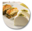 Pistachio dolama, Pistachio baklava, Walnut baklava, Pistachio Sobiyet served with one slice of plain kesme ice cream powder walnut and pistachio.